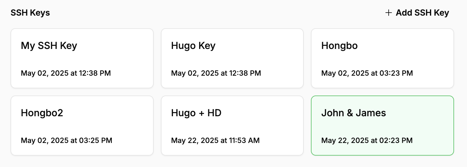Currently, it is **not possible** to add a SSH Key to an instance already live. Make sure to add all keys you need before launching your compute instance. [You can add several keys to a single instance](#how-to-add-multiple-ssh-key-in-a-compute-instance).